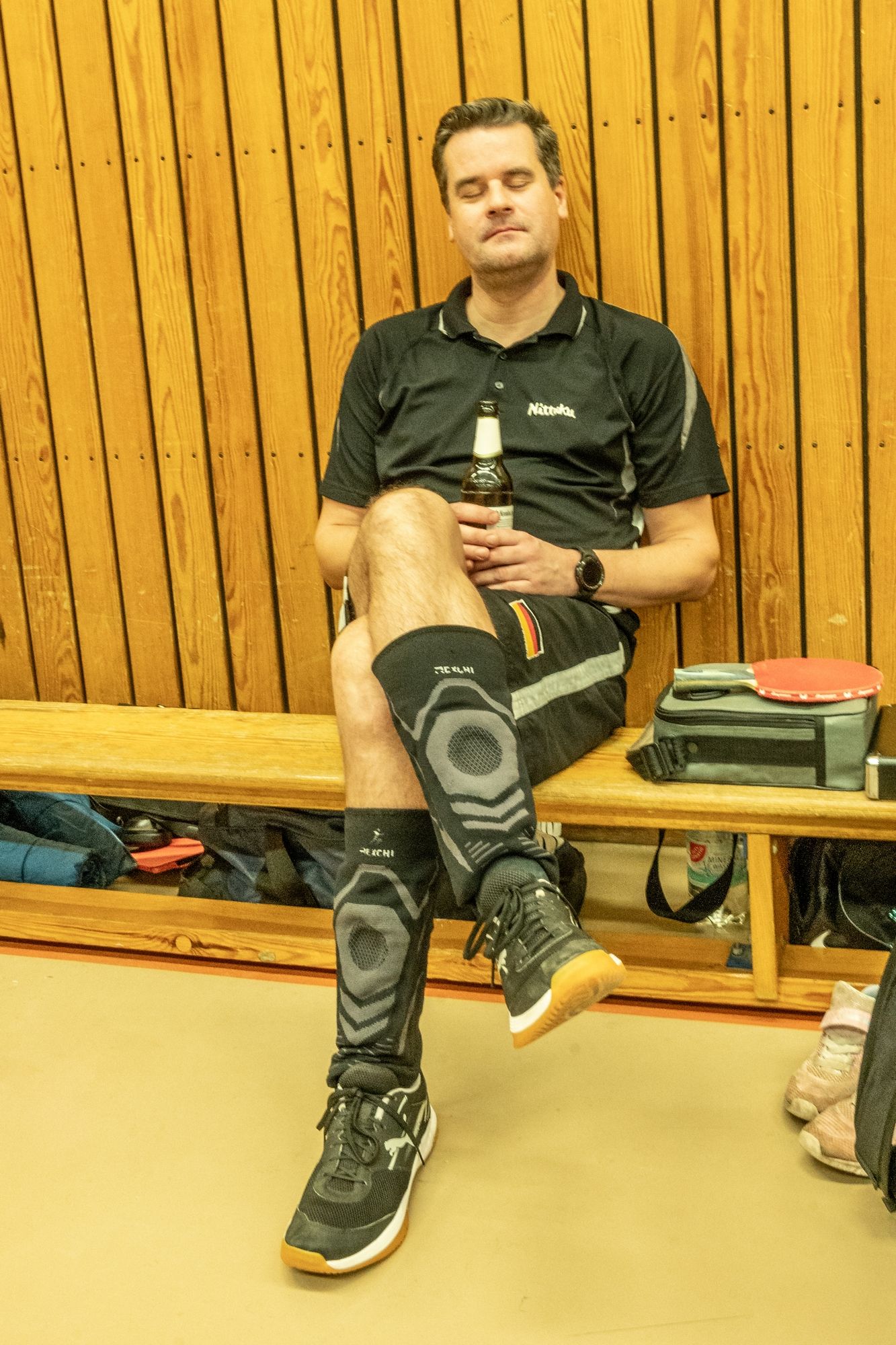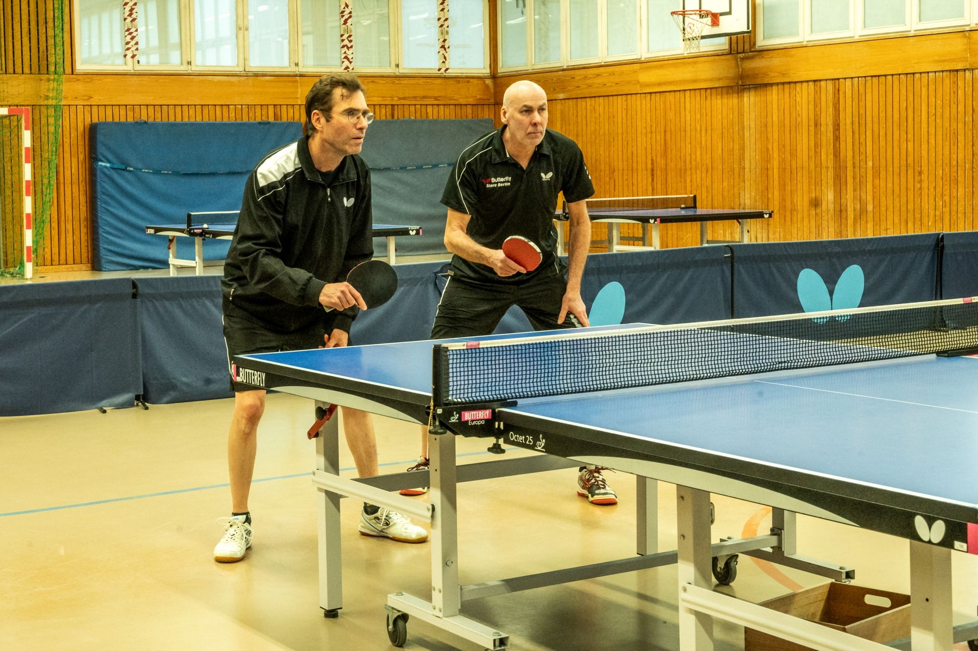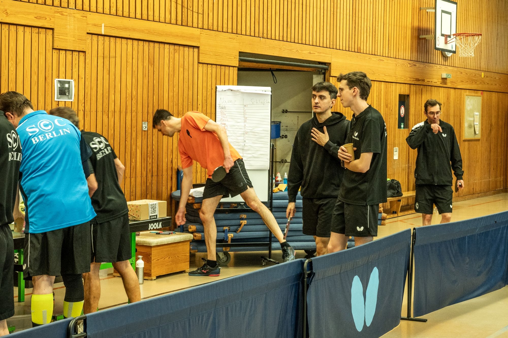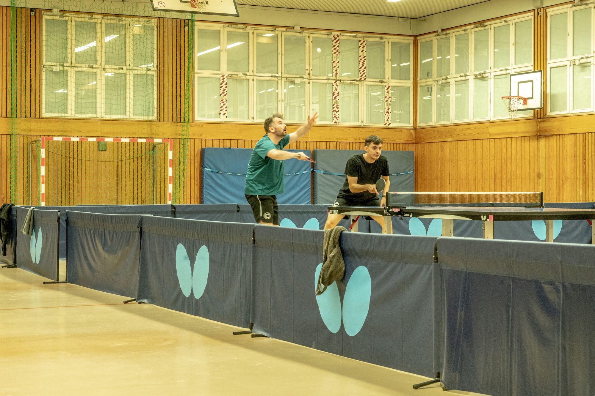 Nach der Begrüßung durch Fritze wurde dann erstmal ein wenig Dankbarkeit gezeigt. Denn ohne unsere ehrenamtlichen Helfer läuft bei uns gar nichts. Hervorgehoben wurden Frank Schweitzer und Hartmut Kästner, die unsere Freizeitgruppe zuverlässig auf Kurs halten, Johann Koschate, der als Hallenschließer für Entlastung bei allen sorgt, sowie Matthias Göbel, der unsere Netze immer wieder in Form bringt. Dafür ein riesiges Dankeschön! Als Vorstand können wir gar nicht oft genug „Danke“ sagen. Vielleicht hilft ja der Gutschein unseres Sponsors PingPongPionier, um zumindest ein kleines Stück zurückzugeben. Danach hieß es: Schleifchen raus, Schläger in die Hand und los geht’s!