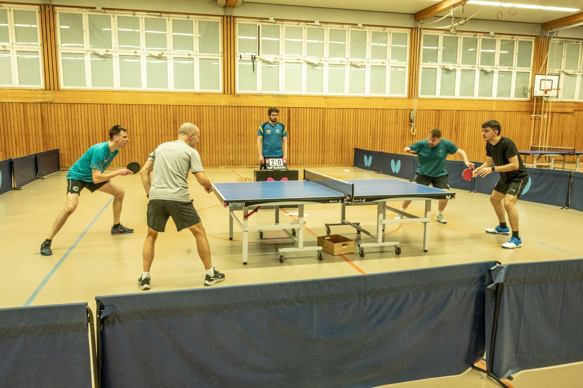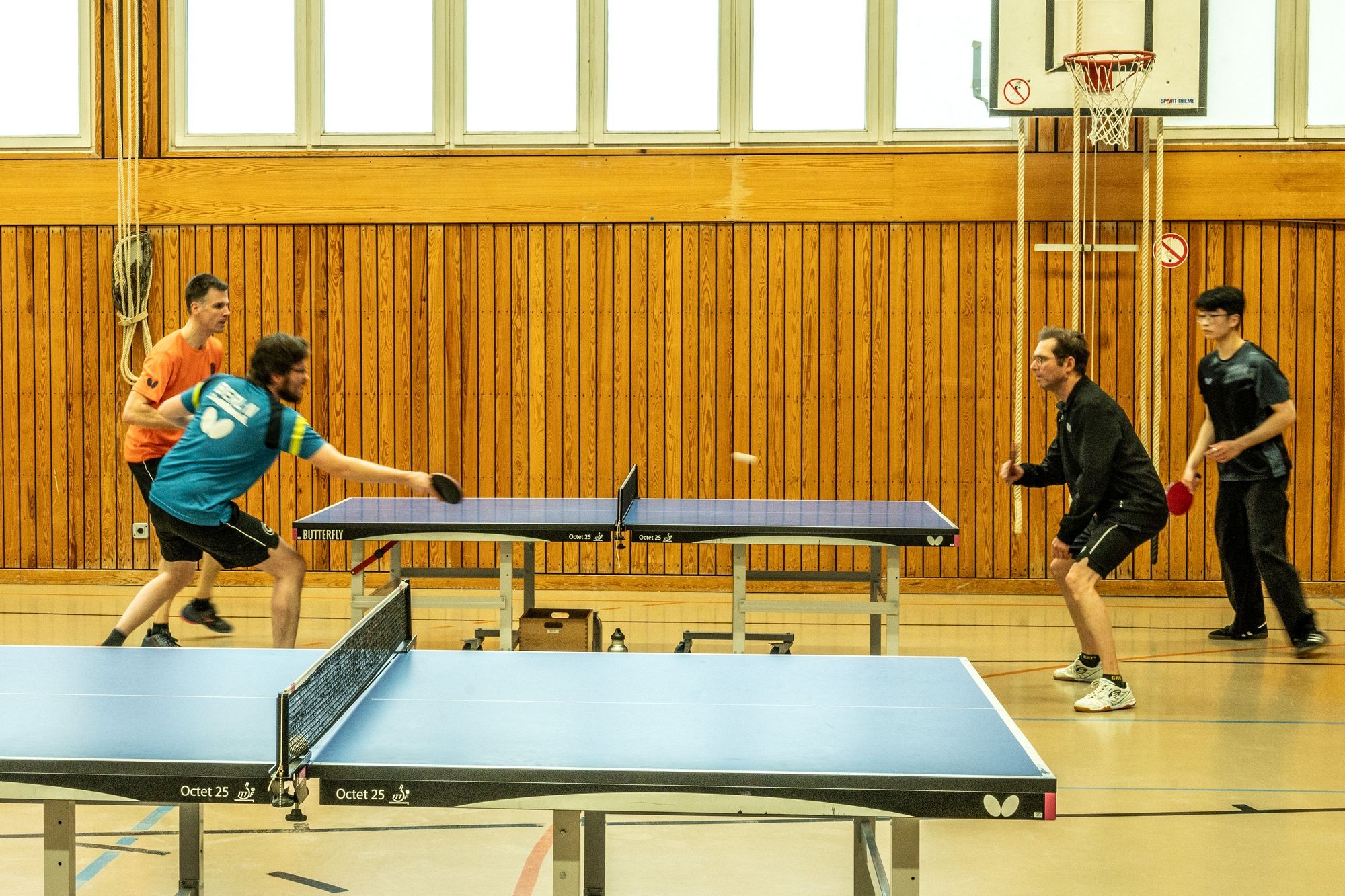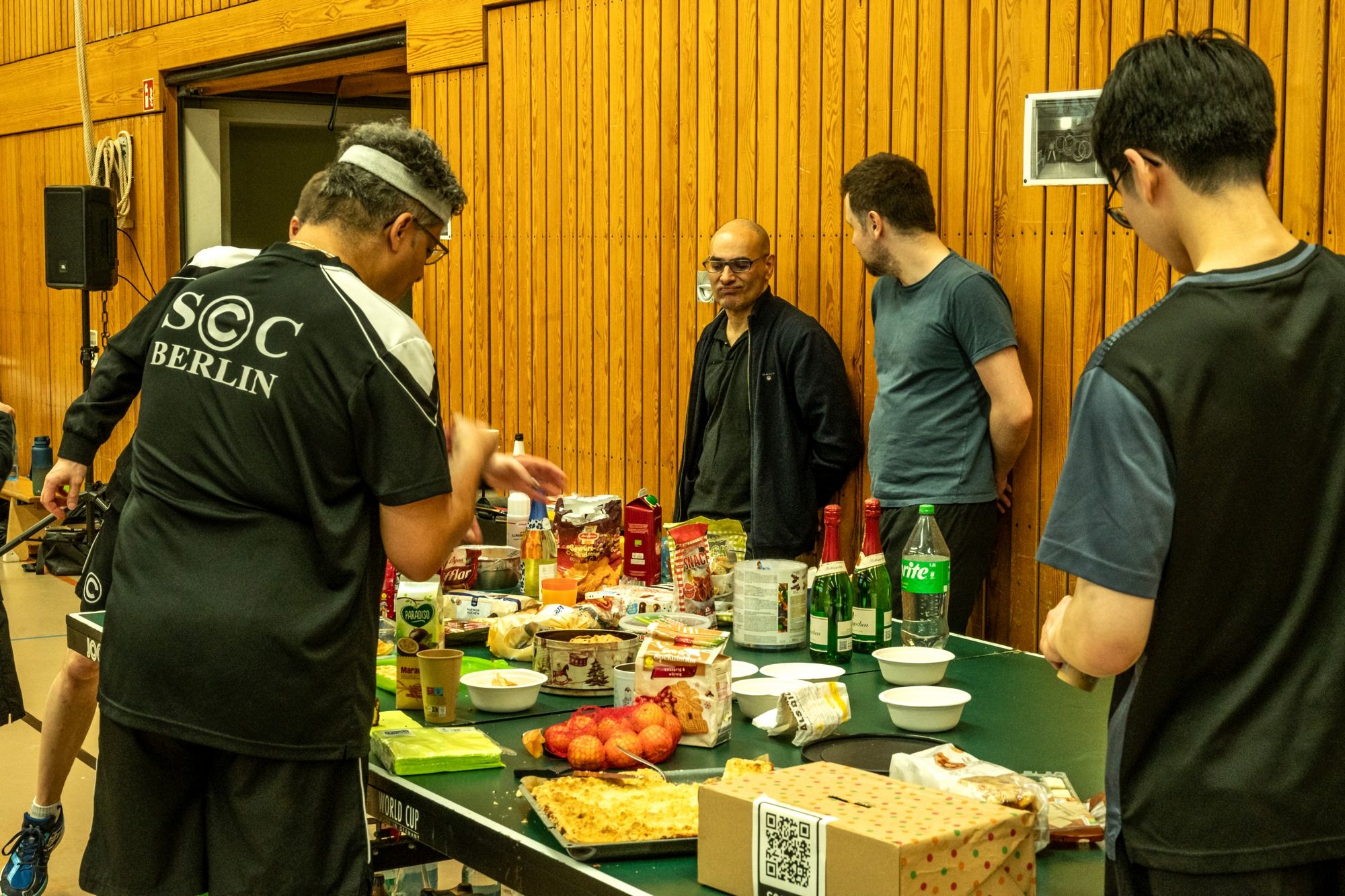 Dann war das Turnier auch schon in vollem Gange. Die Halle war gut gefüllt, die Stimmung bestens und die Teilnehmer hatten nicht nur viel Freude, sondern offenbar auch ordentlich Hunger mitgebracht. Zwischen den Spielen wurde fleißig geschnackt, gelacht und natürlich Tischtennis gespielt. Schön ist auch immer das uns die Familien unserer Mitglieder besuchen. Darüber freuen wir uns sehr.