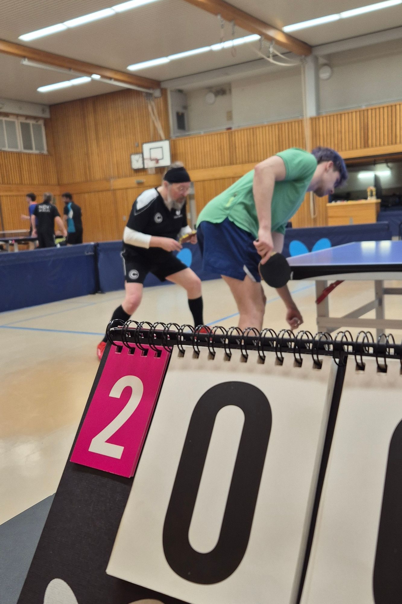 In beiden Gruppen setzten sich die Topgesetzten durch, und größere Überraschungen blieben aus. Als jemand, der noch ohne LPZ, TTR oder welchen Wert auch immer gespielt hat, muss ich nun anerkennen: Der Wert wird immer genauer und aussagekräftiger. Spaß beiseite, denn nun standen die Halbfinals an, und diese waren hart umkämpft. Gerade bei Geza Lakatos / Alex Rein-Jury gegen Moritz Wegner / Stefan Knapp wurde jede Satzpause für taktische Besprechungen genutzt und anschließend auch direkt umgesetzt.