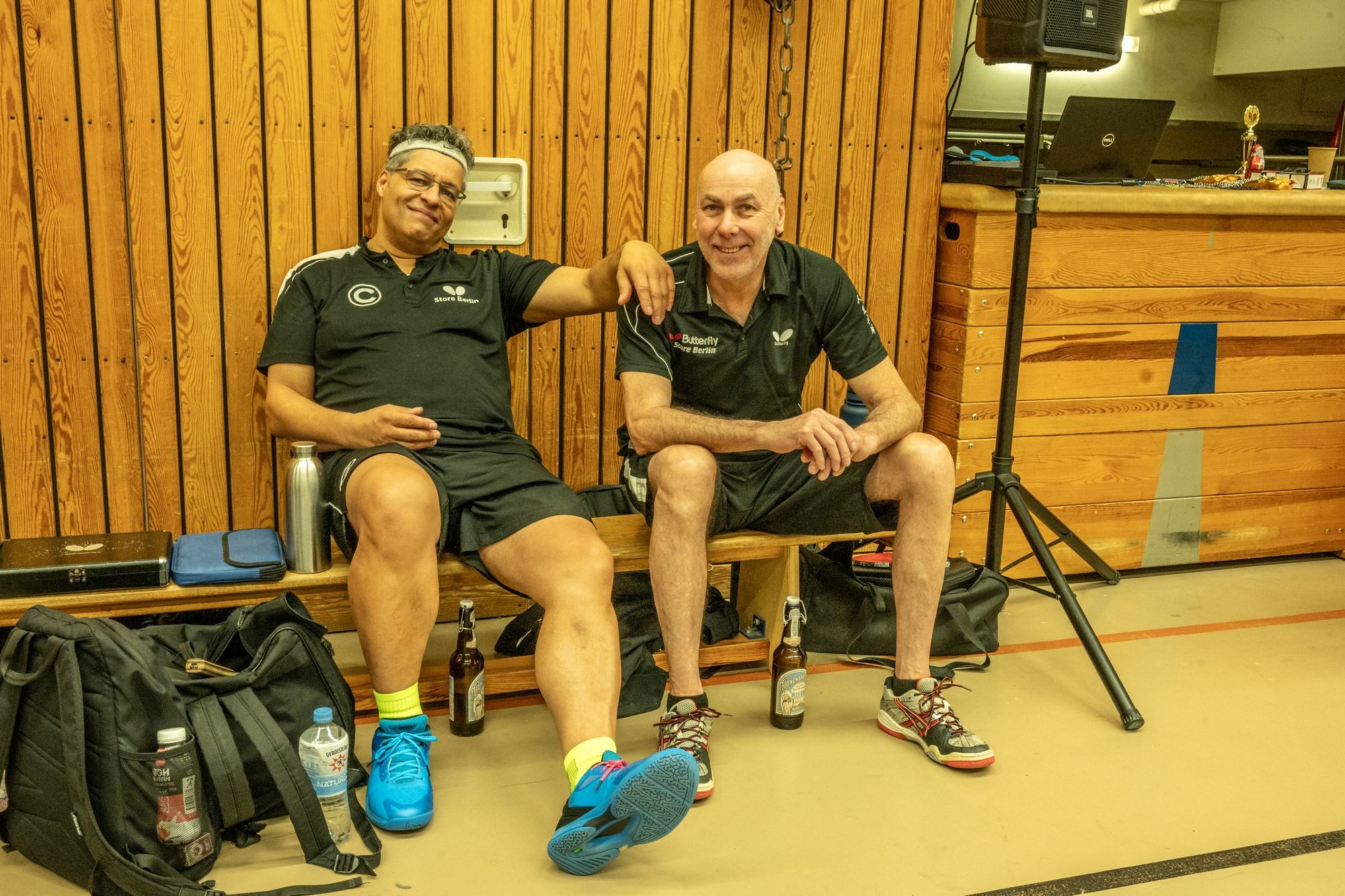 In diesem Jahr waren das Alex Haid und Benedikt Meske. Beide durften sich ihre Doppelpartner aussuchen: Alex entschied sich für Alex Rein-Jury, Benedikt trat gemeinsam mit dem Organisator des Schleifchenturniers, Fritze, an. Am Ende setzten sich Benedikt und Fritze durch. Bene durfte sich über den Pokal und sogar über ein neues Trikot freuen.