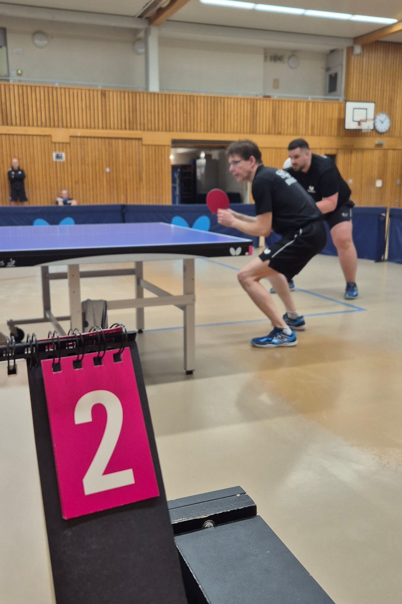 In beiden Gruppen setzten sich die Topgesetzten durch, und größere Überraschungen blieben aus. Als jemand, der noch ohne LPZ, TTR oder welchen Wert auch immer gespielt hat, muss ich nun anerkennen: Der Wert wird immer genauer und aussagekräftiger. Spaß beiseite, denn nun standen die Halbfinals an, und diese waren hart umkämpft. Gerade bei Geza Lakatos / Alex Rein-Jury gegen Moritz Wegner / Stefan Knapp wurde jede Satzpause für taktische Besprechungen genutzt und anschließend auch direkt umgesetzt.