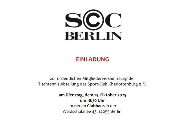 EINLADUNG zur ordentlichen Mitgliederversammlung der Tischtennis Abteilung des Sport-Club Charlottenburg e. V. am Diens...