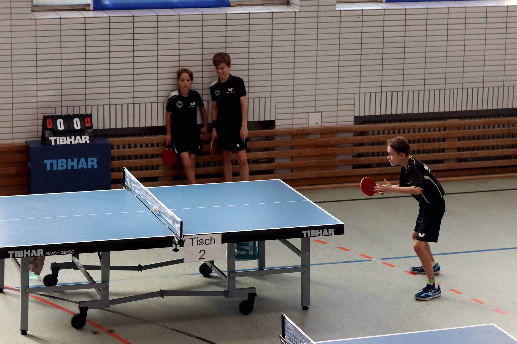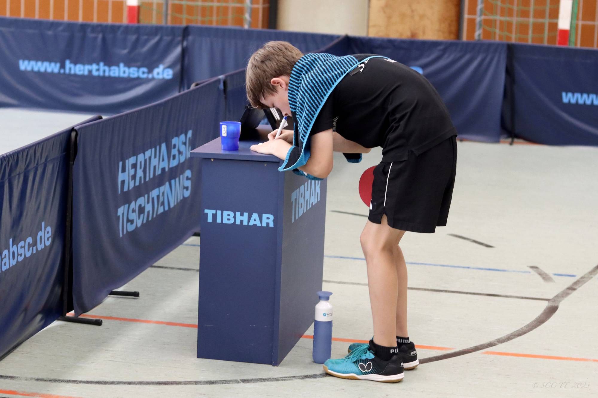 Nochmal zur Erinnerung, die Landesrangliste ist das anspruchsvollste Turnier in Berlin! Überhaupt einen Platz dafür zu erspielen, ist irre schwer. Doch unsere SCC-Jungs haben einmal mehr gezeigt, warum unser Verein etwas ganz Besonderes ist. Warten, Einspielen, Ansage anhören und dann ging es auch schon los mit dem ersten Einzel.