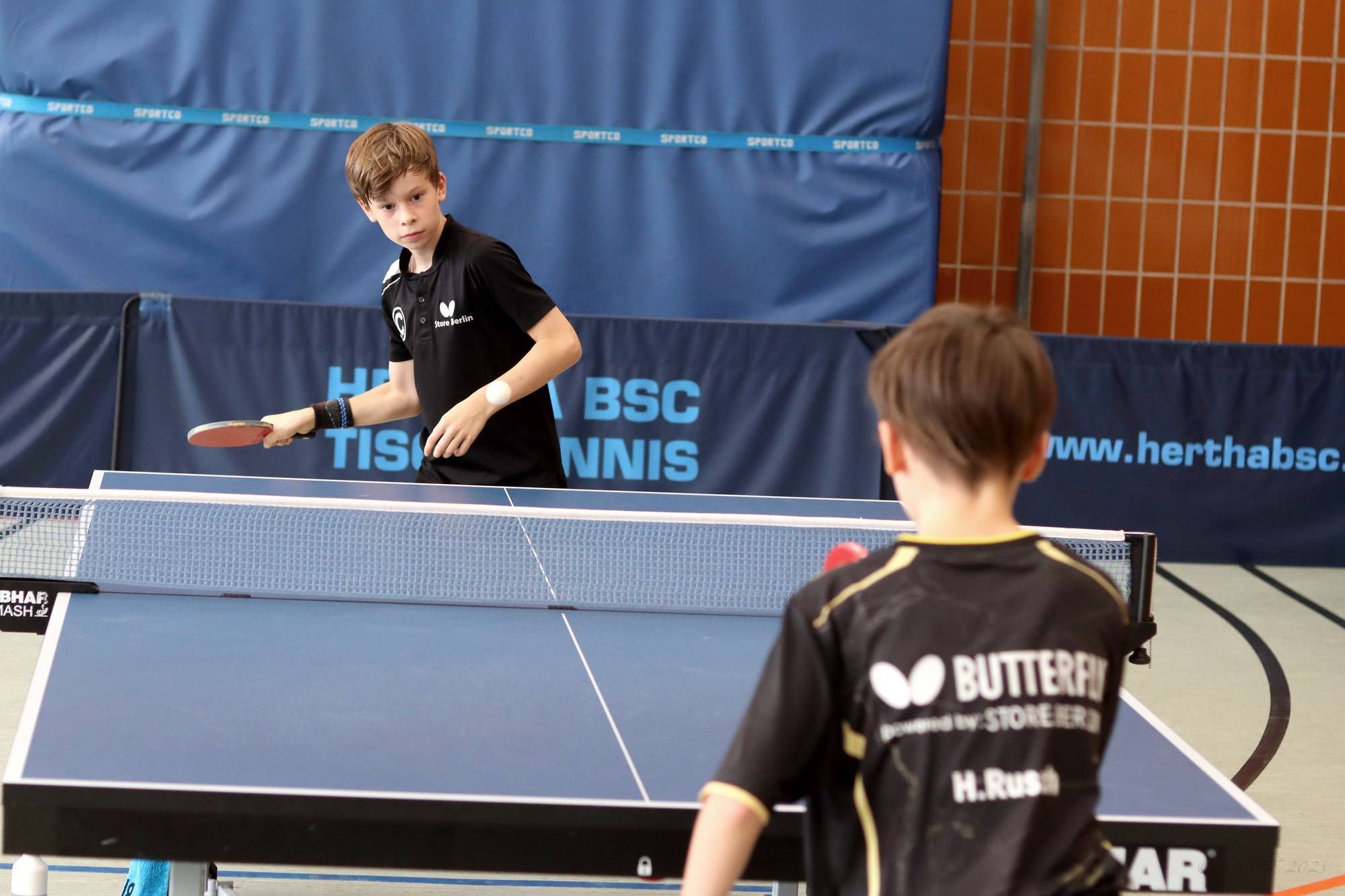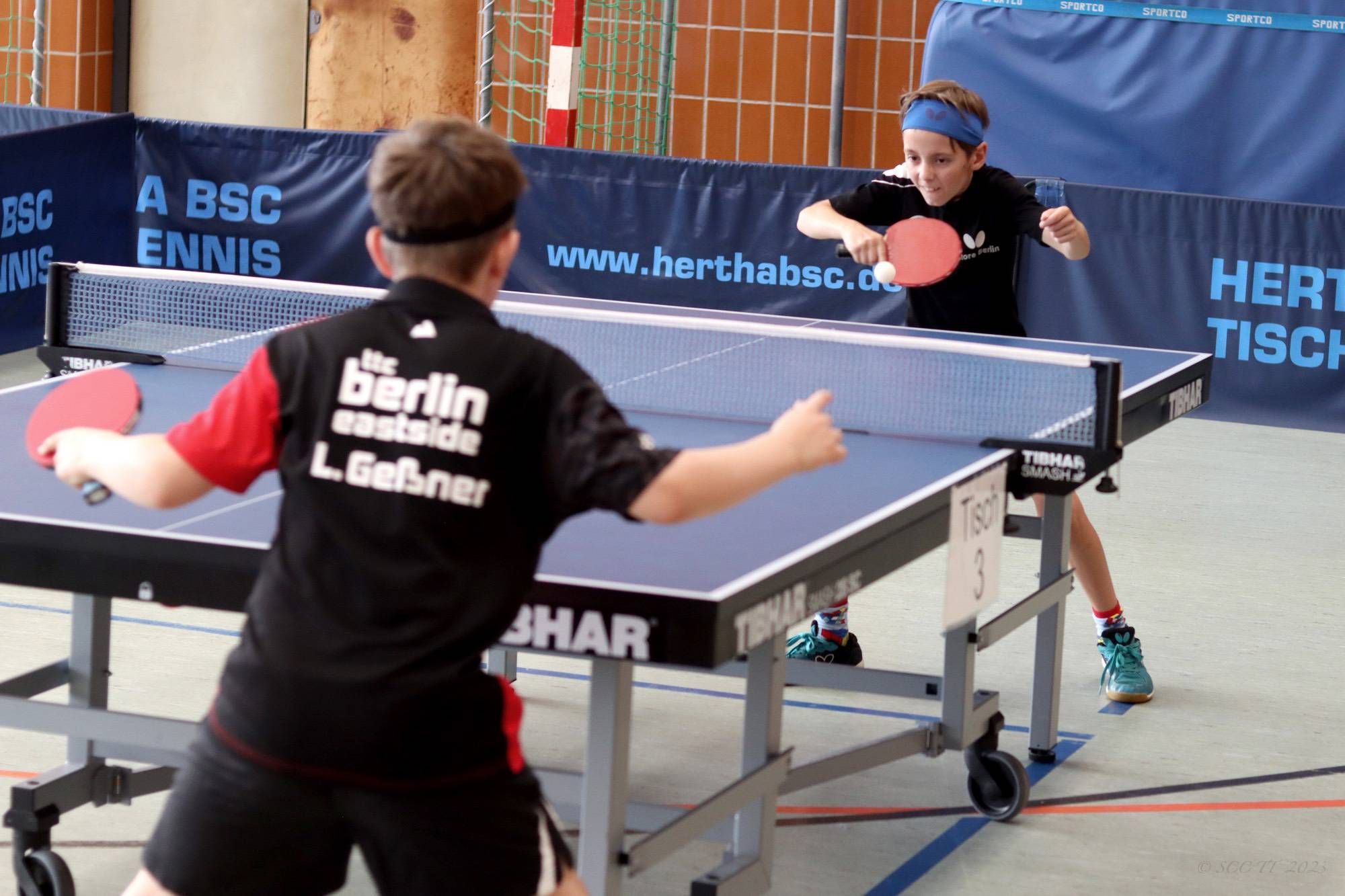 So richtig verrückte Ballwechsel gab es dann noch im Finale zu bestaunen! Großer Respekt an Hugo von Rotation und Moning von Hertha BSC. Beide Jungs lieferten ein hochklassiges Finale ab, bei dem keiner schlechter spielte als der andere. Beide hätten den Sieg verdient gehabt, aber am Ende kann nur einer gewinnen. Diesmal war es Moning, der hauchdünn im 5. Satz - 15:13 - den 1. Platz bei der Landesrangliste 2023 J13 erspielte.
