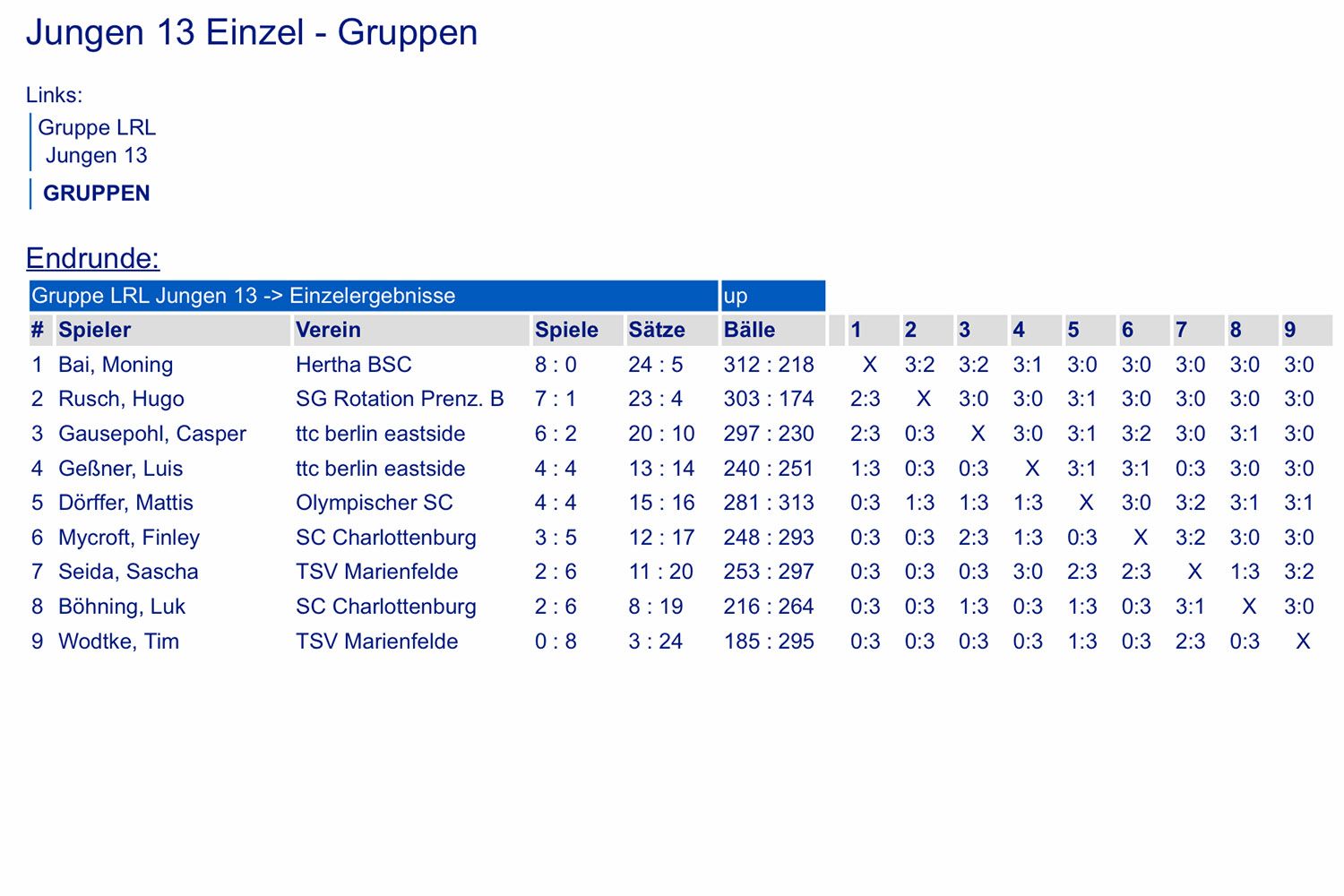 Aber nicht nur Finley, auch Luk gewann gegen den Sieger der 2. Vorrangliste. So richtig knapp wird es für beide gegen den späteren Drittplatzierten. Gegen Casper von eastside verliert Finley erst im 5. Satz. Trotzdem bärenstark!